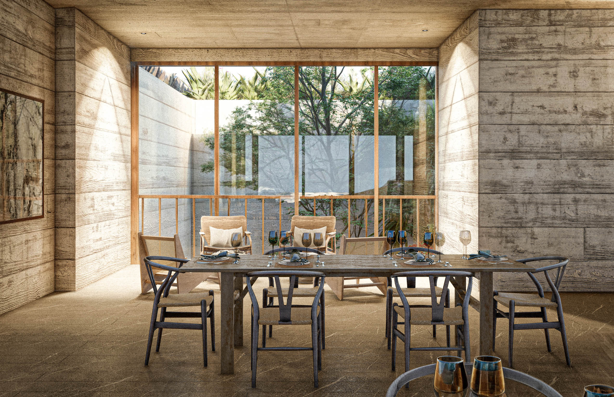"La Cañada - Casa Club" no se plantea como un objeto protagónico, sino como una extensión del terreno: una plataforma colectiva que promueve la vida en comunidad a través de la apertura, la integración material y una respuesta sensible al clima.